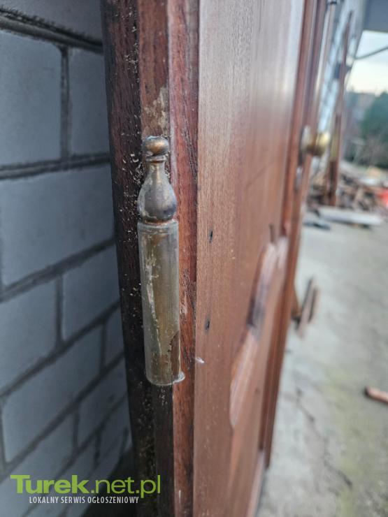 Drewniane, dwuskrzydłowe drzwi zewnętrzne w rustykalnym stylu. Lite drewno dębowe (nie okleinowane) Mają piękne, rzeźbione detale i ciepły, brązowy kolor drewna (zewnątrz jasny brąz, wewnątrz ciemny brąz) Drzwi są używane, ale nadal w dobrym stanie i gotowe do montażu w Twoim domu. Zawiasy, zamki w komplecie, także zamek szyfrowy, bez ościeżnicy. Możliwość montażu części, która ma szerokość 80cm, przystawka ma 40cm, wysokość 2,05m. Po uzgodnieniu telefonicznym możliwość obejrzenia drzwi osobiście. Odbiór osobisty woj. wielkopolskie, Przykona. Nr kontaktowy 690-273-346.