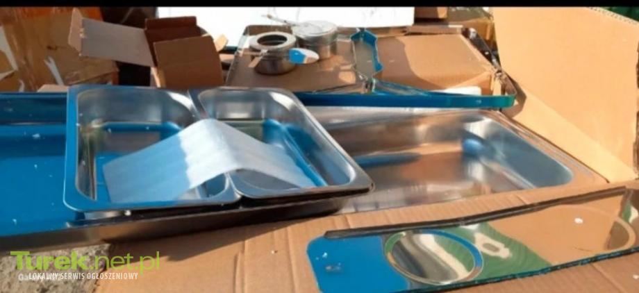 Zestaw nowych nierdzewnych pojemnikow gastronomicznych