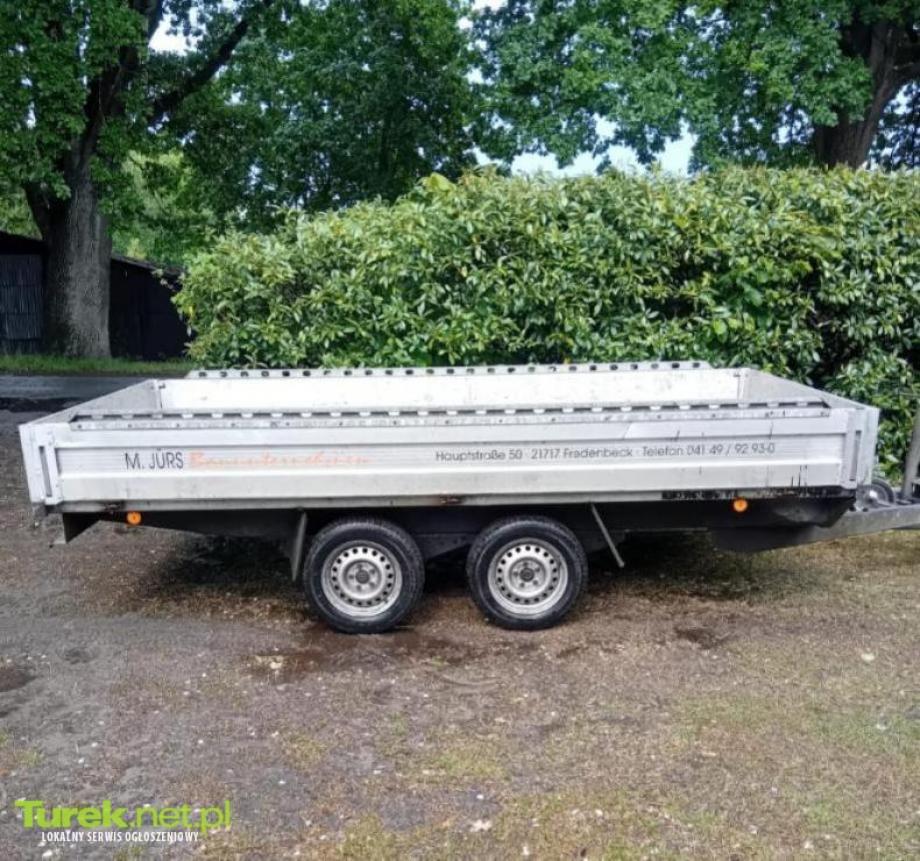 Przyczepa ciężarowa zarejestrowana firmy Boeckmann w bardzo dobrym stanie 2 osie. Długość z dyszlem 5300, szerokość 1865,wysokość 1120. Ciężar własny 560kg, ciężar całkowity 2000kg.