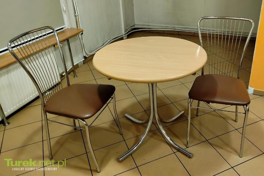 Sprzedam stół z 2 krzesłami. Stół okrągły,średnica 80cm.