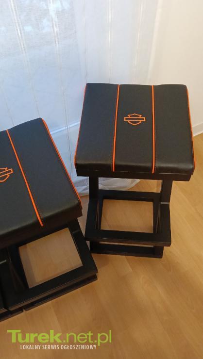 Sprzedam cztery krzesła barowe hokery nowe nie używane po prostu kupione i za wysokie, krzesła z logo Harleya Davidsona. Więcej informacji na telefon