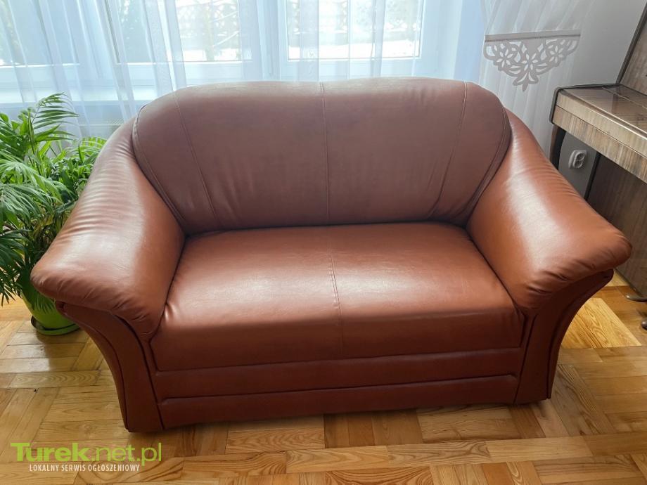Sprzedam w dobrym stanie sofę z ekoskóry w kolorze jasny brąz o wymiarach dł 160 cm, szer 90 cm.