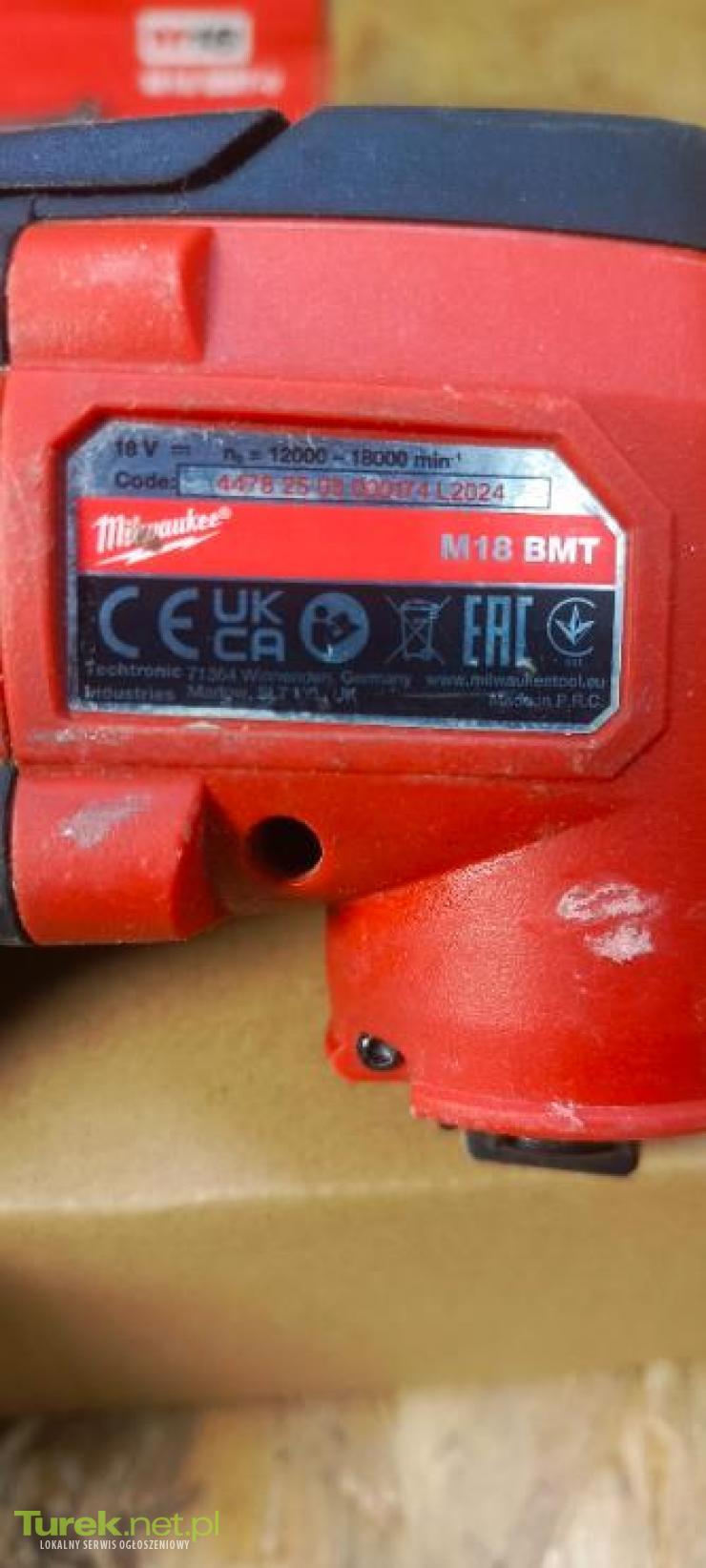 Przedmiotem sprzedaży jest urządzenie wielofunkcyjne - multitool Milwaukee. Sprzęt używany, sprawny, zdjęcia przedstawiają rzeczywisty stan przedmiotu. Posiada płynną regulację obrotów. Dane techniczne: Napięcie: 18 V Kąt oscylacji lewo/prawo: 1,7° Prędkość bez obciążenia: 12000 - 18000 obr/min Poziom wibracji przy cięciu w drewnie: 12,3 m/s2 Poziom wibracji przy szlifowaniu: 3,6 m/s2 Poziom natężenia hałasu i ciśnienia akustycznego: 90,8 / 79,8 dB(A)