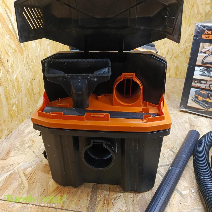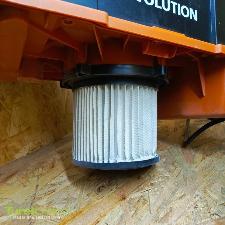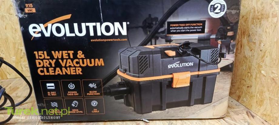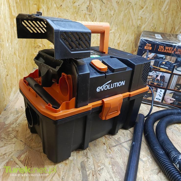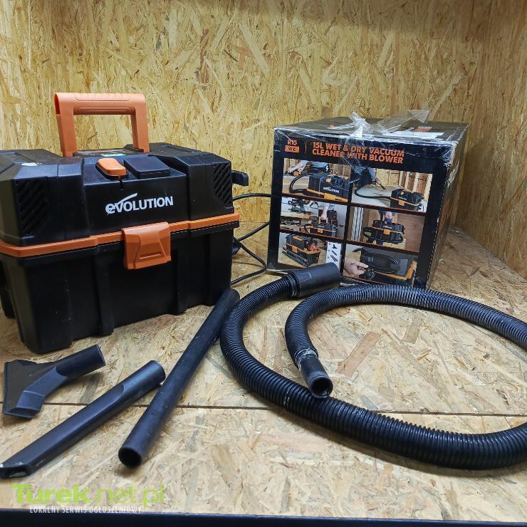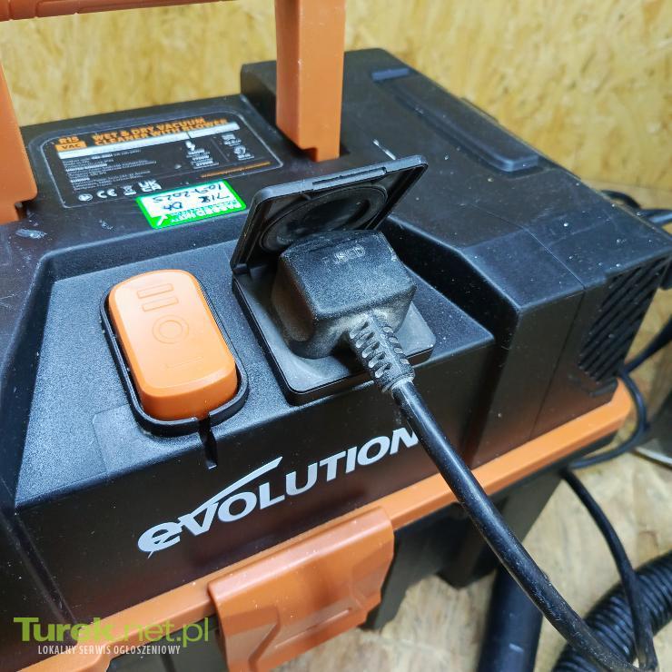 Przedmiotem sprzedaży jest odkurzacz przemysłowy na sucho i mokro marki Evolution Urządzenie używane, sprawne, zdjęcia przedstawiają rzeczywisty stan przedmiotu. Odkurzacz posiada gniazdo do podłączenia elektronarzędzi. Silnik (230 V 50 Hz): 1000 W Przepływ powietrza: 4,.5 l/s Ogólna pojemność zbiornika: 15 l Możliwości odkurzania na sucho: 9 l Możliwości odkurzania na mokro: 8 l Długość kabla zasilania 3 m Długość węża dopływu powietrza: 1,8 m Waga urządzenia: 3,2 kg Waga z opakowaniem: 5 kg Wymiary opakowania: 620 mm x 435 mm x 290 mm Waga produktu: 6,4 kg Poziom ciśnienia akustycznego LPA: 230 V: 80 dB(A) K=3 dB(A)