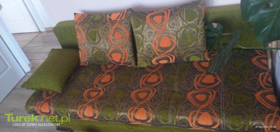 Sprzedam kanapę rozkładana,ma 2 duże poduszki i 2 mniejsze, Może służyć do spania dla 2 osob . Ma szufladę do przechowywania. Materiał nie zniszczony,nieprzetarty.