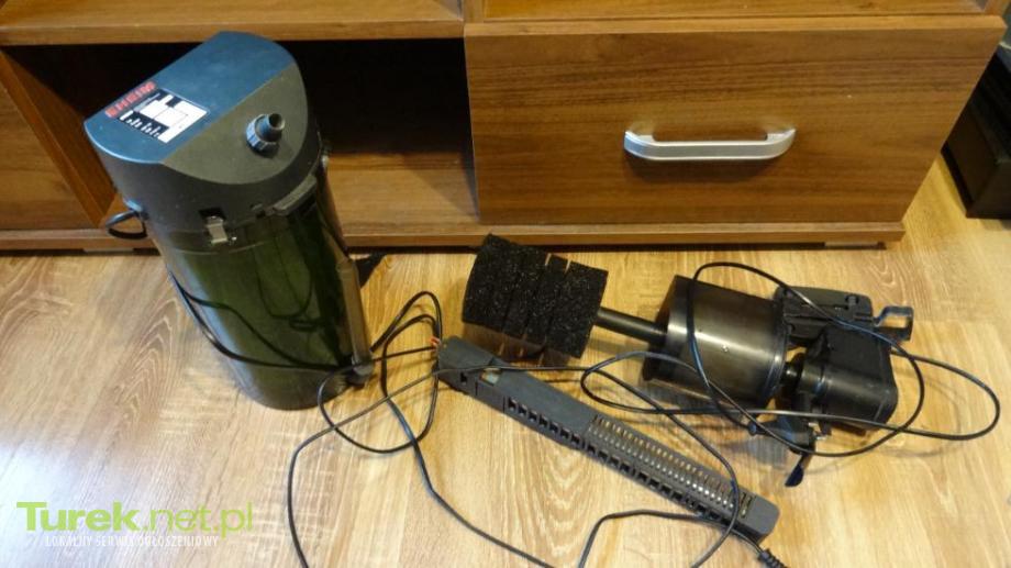 Akwarium 250 litrów z oświetleniem i stabilną szafką + tło ,grzałka300 wat fluwal ,filtr wewnętrzny Aquael turbo 2000 l , filtr eheim zewnętrzny z wkładami bez węży ,termometr, wiaderko 30 kg żwirku. akwarium szczelne ,filtry i grzałka sprawne.