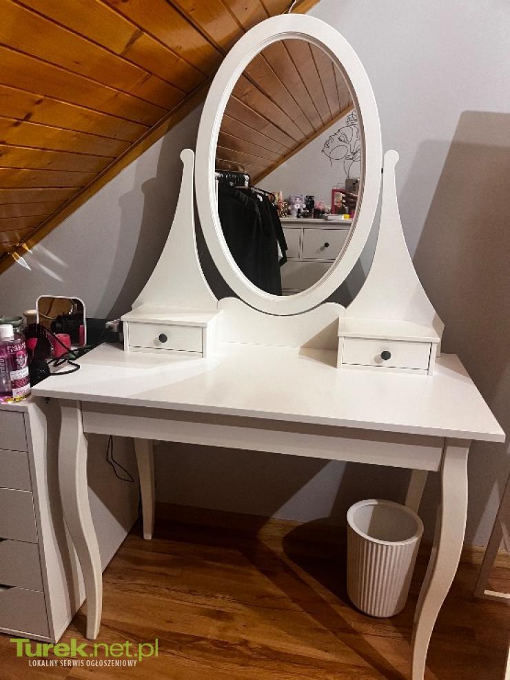 Praktyczna toaletka z lustrem w dobrym stanie. Posiada dwie szuflady do przechowywania kosmetyków i innych drobiazgów oraz jedną większą. Wykonana z białego drewna, pasuje do różnych stylów wnętrz. Idealna do urządzenia sypialni lub garderoby. Wymiary 100x50. Cena do negocjacji