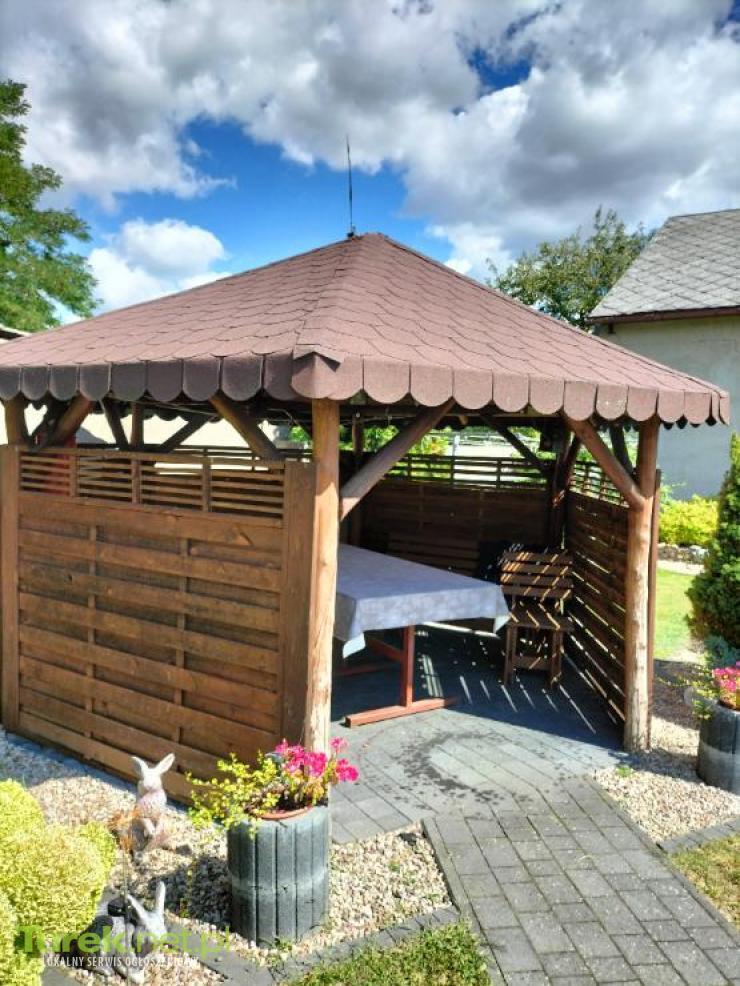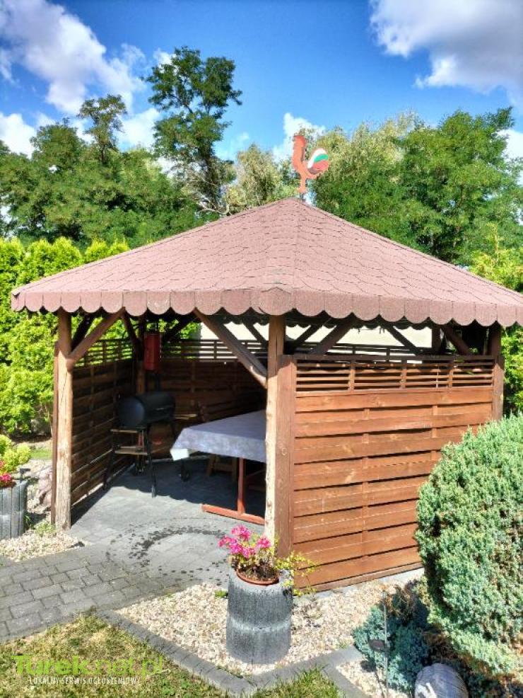 Sprzedam altanę ogrodową stojącą na słupach akacjowych pokryta deskami papą i gontami cena 2200zl do negocjacji