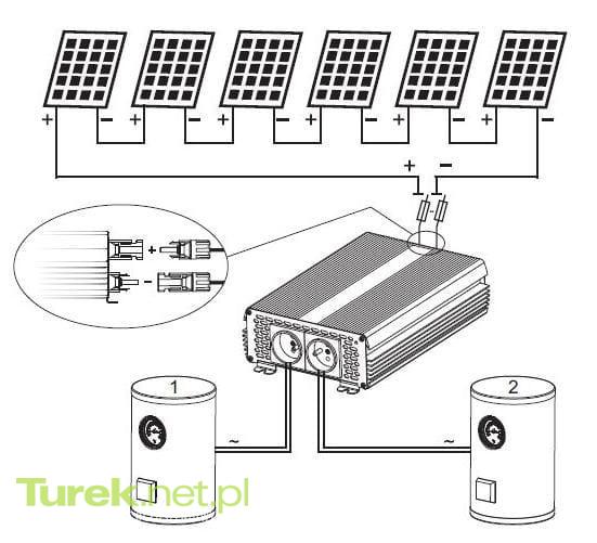 System idealnie nadaje się do ogrzewania wody w bojlerach elektrycznych, wykorzystując energię słoneczną. Prąd stały wytwarzany przez panele zamieniany jest w przetwornicy na prąd przemienny, którym można zasilać urządzenia grzewcze.
