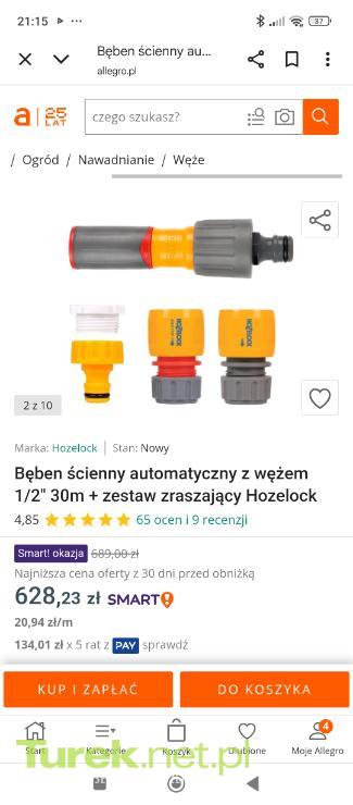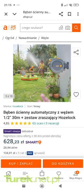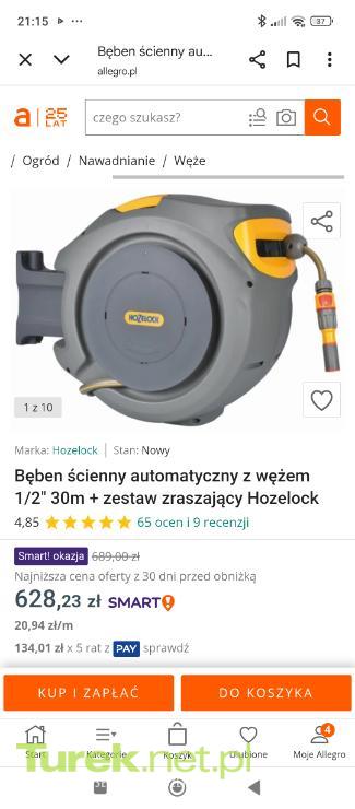Sprzedam automatyczny zwijacz węża ogrodowego. Powystawowy, długość węża 30+3 m.b.