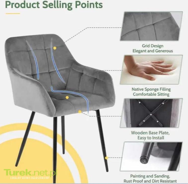Wygodna poduszka siedziska: wyposażona w piankę o dużej gęstości wewnątrz zapewniającą wysoki komfort siedzenia, ponadto mają w pełni wyściełane krzesła z miękką welurową podszewką wewnętrzną zapewniającą większy komfort i miękkość.