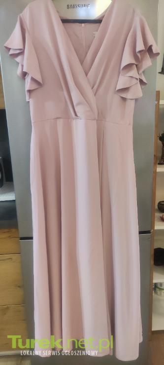 Sukienka w kolorze pudrowego różu. Z delikatnym rozcięciem po boku. Założona tylko raz . Rozmiar L. Cena do małej negocjacji