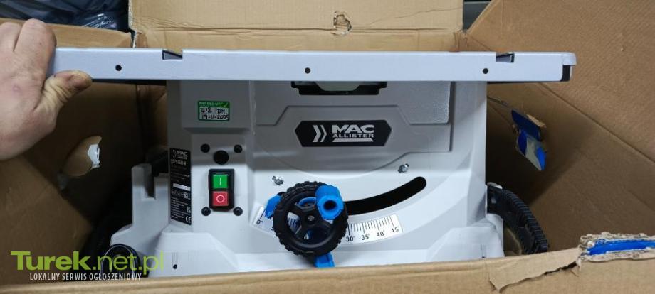 Przedmiotem sprzedaży jest powysty piła stołowa macallister 254 mm. Komplet akcesoriów. Parametry logistyczne Długość opakowania: 37 cm Wysokość opakowania: 69.5 cm Szerokość opakowania: 66.5 cm Waga brutto: 28 kg Wymiary produktu: wys. 108,8 x szer. 81 x gł. 82 cm Średnica tarczy: max 254 mm Parametry techniczne i użytkowe Obszary zastosowania: prace stolarskie Głębokość cięcia: przy 90° - 80 mm, przy 45° - 55 mm Otwór tarczy: 30 mm Moc maksymalna: 1500 W Prędkość obrotowa: 4200 obr./min Kąt nachylenia: 45° Napięcie: 240 V Akcesoria w zestawie: tarcza fi 254 x fi 30 x 3 mm, 40T, 2 × klucz, adapter wylotu pyłu, osłona tarczy, wąż, popychacz, prowadnica i kątownik Zapraszam na moje pozostaje ogłoszenia.