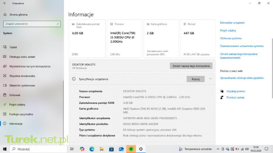 laptop idealny do korzystania z przeglądarki, prac biurowych oraz do starszych gier