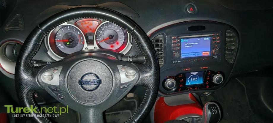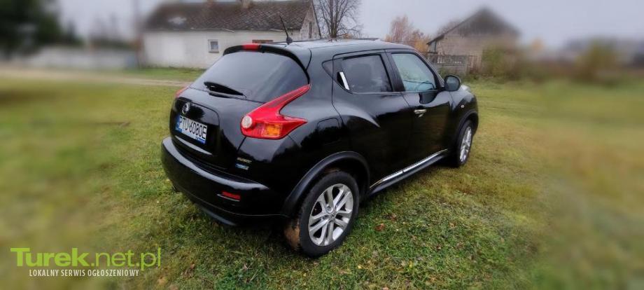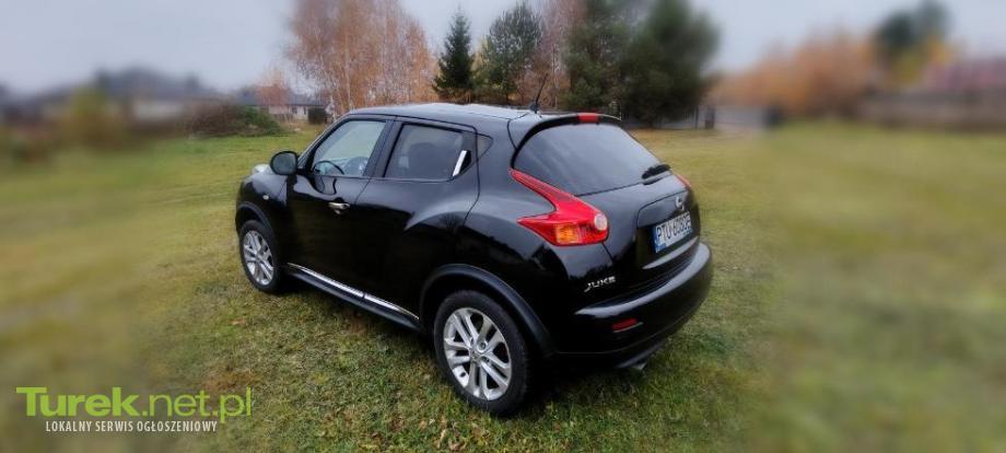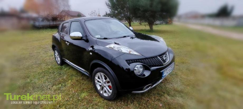 Sprzedam Nissan Juke Tekna 2011r wyposażony w najbardziej chwalony za bezawaryjność zwykły, bez turbiny, bardzo żwawy i zaskakująco ekonomiczny silnik benzynowy 1.6 117KM z ekonomiczną manualną skrzynią, z bardzo bogatym wyposażeniem z kamerą cofania, w pięknym lakierze - czarnej perle, bezkluczykowym otwieraniem, odpalaniem przyciskiem, czujnikiem deszczu, alu felgami, automatycznie składanymi lusterkami, skórzaną tapicerką, podgrzewanymi fotelami, przyciemnianymi szybami. Posiada 3 tryby jazdy (sport, normal, eco), ABS, ESP, czujnik zmierzchu, komputer pokładowy, nawigację dotykową z kompletem map, tempomat, bluetooth, skórzaną i multimedialną kierownicę z wentylowanej skóry, klimatronic, halogeny, el. sterowane szyby.