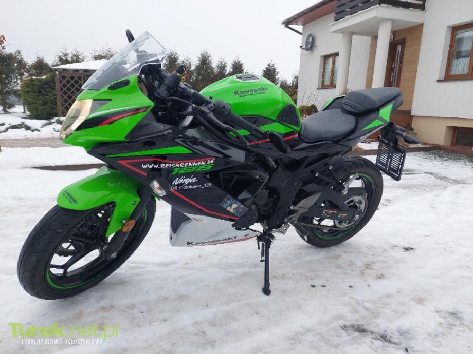 KAWASAKI NINJA 125.. 6-biegów,rok 2023..przebieg 12 tyś.km. Książka serwisowa dwa oryginalne kluczyki.ABS,,świeżo sprowadzony z Niemiec.opony dunlop stan jak na foto.sprawny,jeżdżący plastiki całe lakier zadbany..Polecam cena 12.800 zł kontakt tylko telefoniczny...