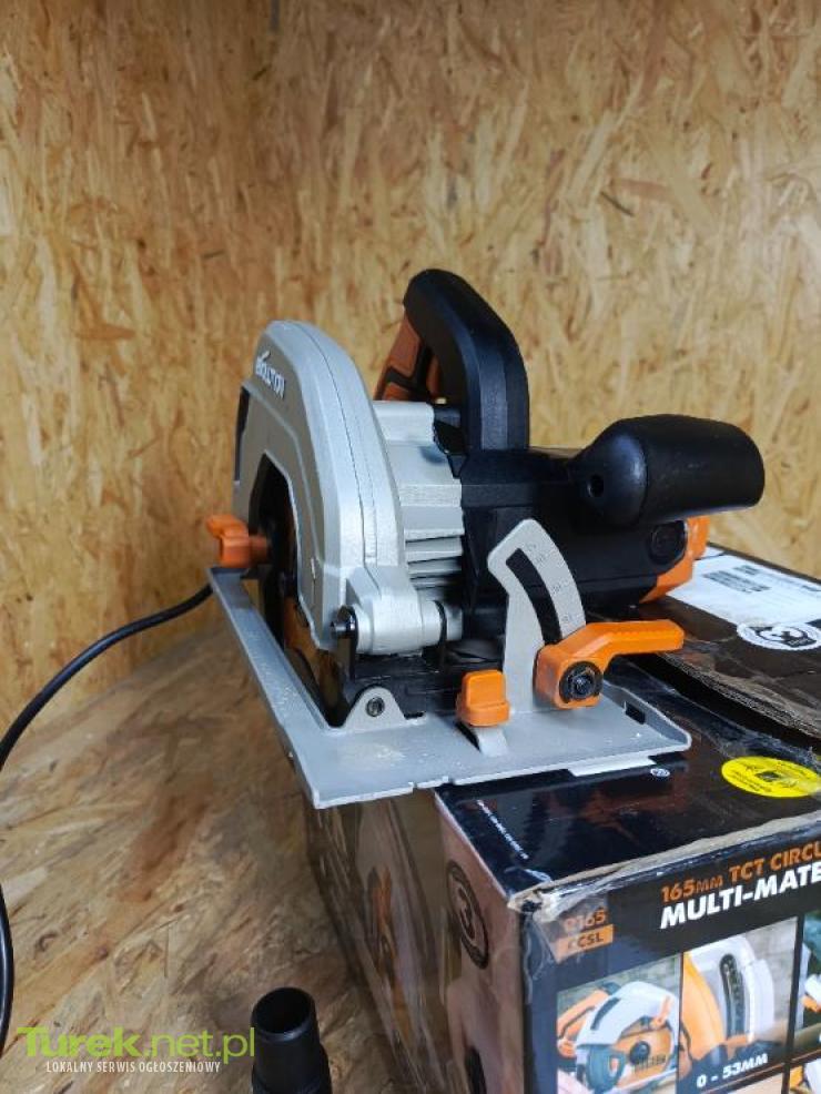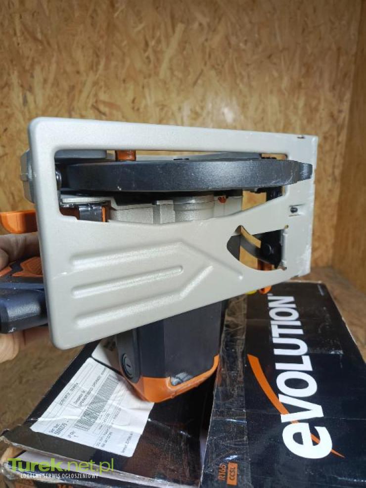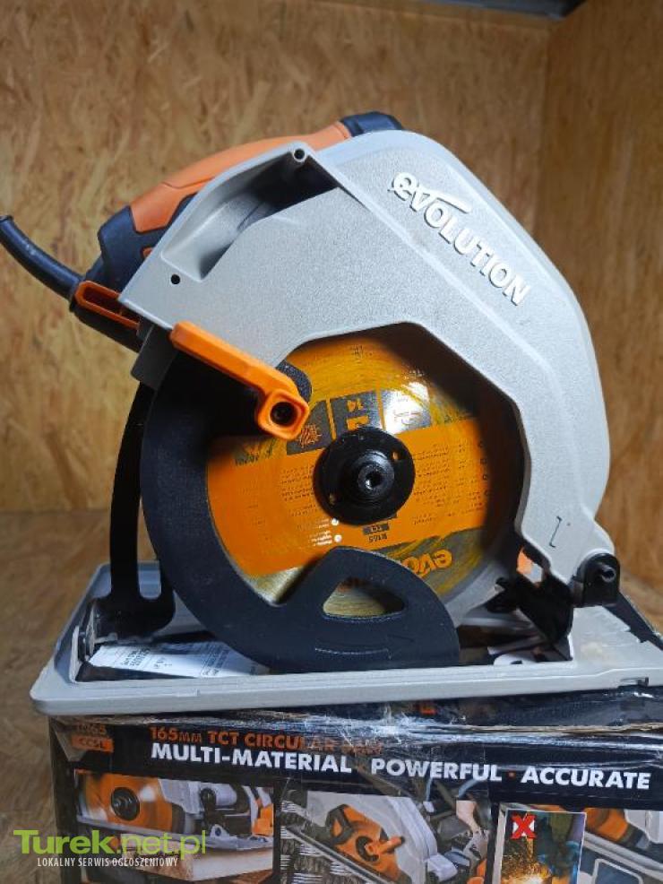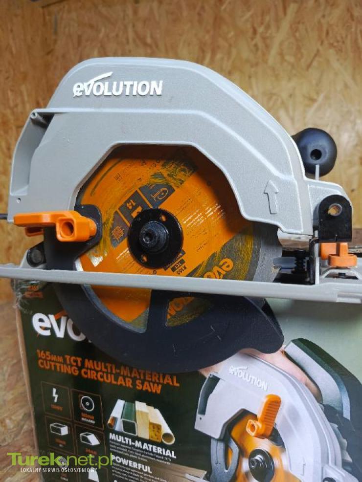 Przedmiotem sprzedaży jest pilarka tarczowa Evolution 165 mm. 1200w. Sprzęt używany, sprawny,lKomplet jak na zdjęciu. Stan bdb . Moc: 1200W Prędkość obrotowa: 3700/min Max grubość cięcia stali: 3mm Max zdolność cięcia pod kątem 90 stopni: 53mm Max zdolność ciecia pod kątem 45 stopni: 34mm