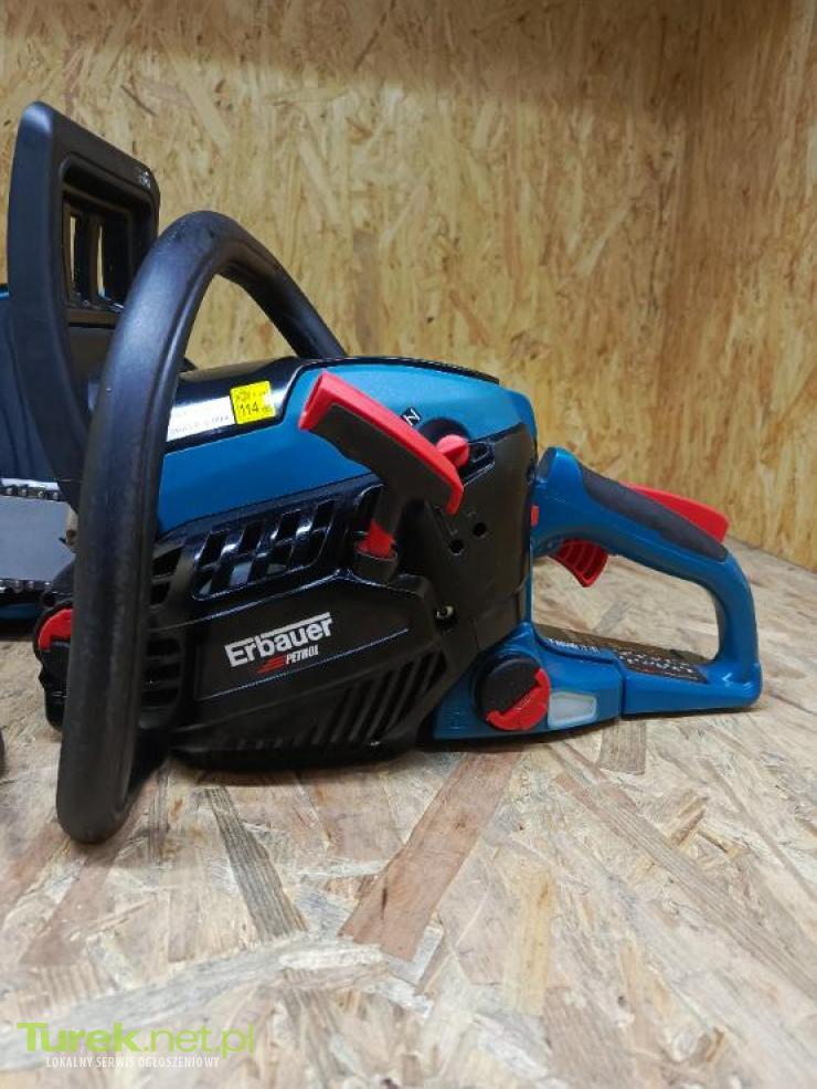 Przedmiotem sprzedaży jest pilarka spalinowa erbauer ecsp41-1 Sprzęt używany w bdb stanie , zdjęcia przedstawiają rzeczywisty stan przedmiotu. Waga brutto: 7.9 kg Waga pilarki: 5,2 kg Długość prowadnicy: 40 cm Obszary zastosowania: cięcie drewna, ścinanie drzew i gałęzi Emisja hałasu: 114 dB(A) Pojemność skokowa: 41,4 cm3 Pojemność zbiornika paliwa: 0,55 l Smarowanie: automatyczne Rodzaj silnika: dwusuwowy