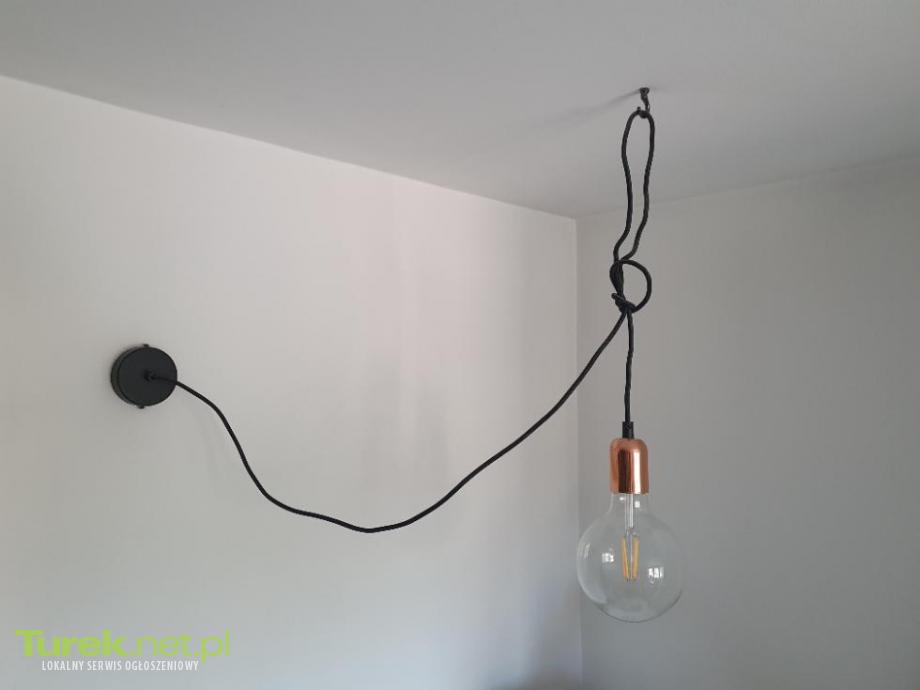 Sprzedam: wiszącą lampę w kolorze czarnym z miedzianą oprawą. Żarówka Led 8W typu Edison. Do obejrzenia w Turku.