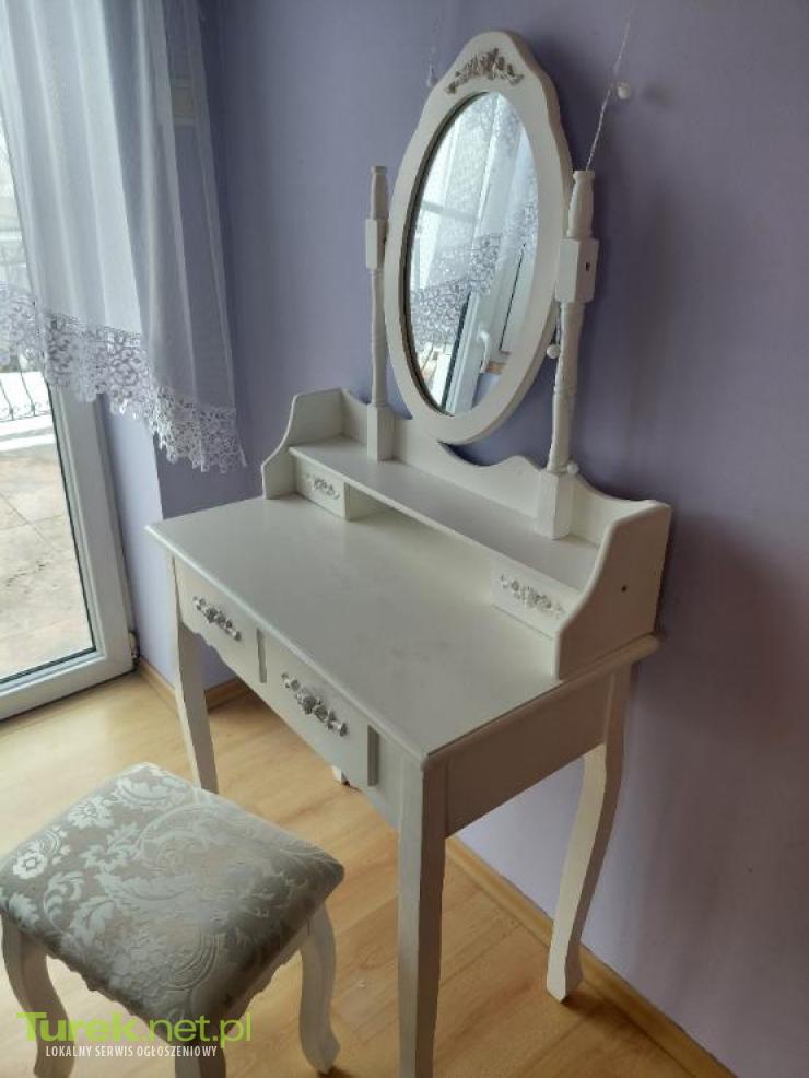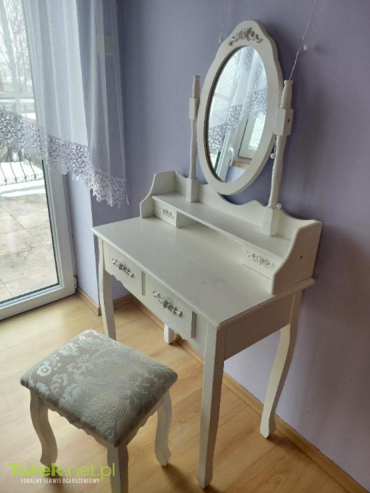 Sprzedam toaletkę z taboretem w dobrym stanie o wymiarach szerokość-75cm,wysokość-72cm, głębokość-40cm.Odbiór okolice Koła.