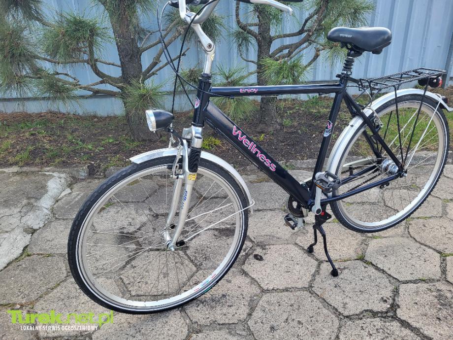 Sprzedam rower Trekkingowy niemiecki Wellness Enjoy, koła 28, rama aluminiowa, osprzęt Shimano Nexus 7, biegi w piascie, oświetlenie sprawne, resorowany przód, stożkowe wzmocnione koła, opony stan bardzo dobry.