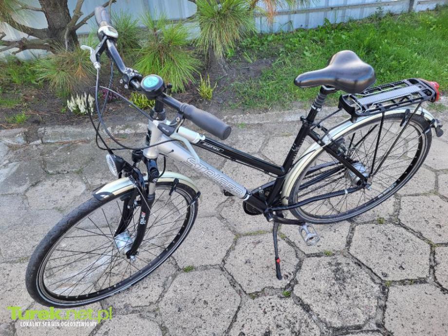 Sprzedam rower niemiecki Staiger koła 28, rama aluminiowa, osprzęt Shimano Nexus 8, amortyzowany przód oraz siedzenie, oświetlenie z przedniej piasty, stożkowe wzmocnione koła, opony stan bardzo dobry.