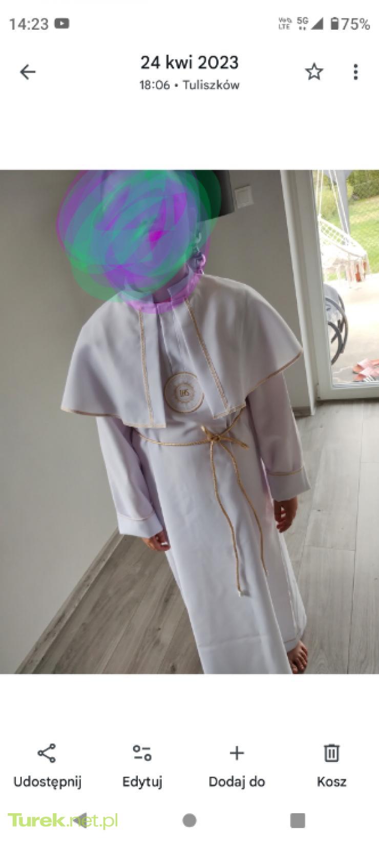 Sprzedam albę,garnitur i buty wszystko w bardzo dobrym stanie jak nowe po jedynym dziecku kupione w sklepie Artex Turek. Garnitur kosztował 400zł,alba 200zł, buty 219zł . Polecam