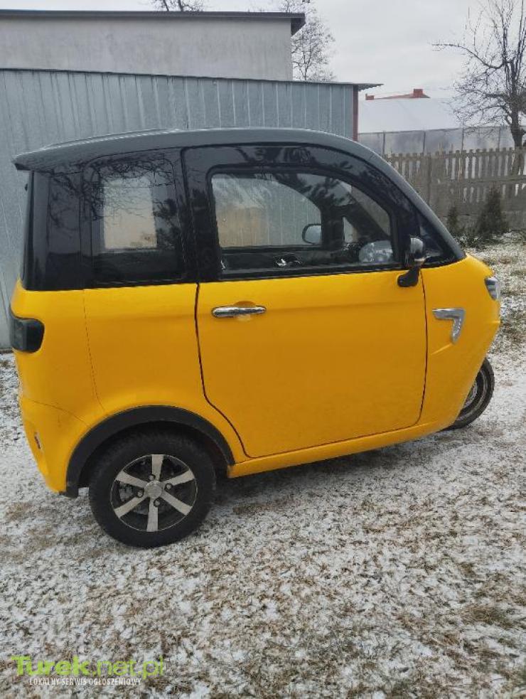 Mam na sprzedaż elektryczny pojazd trójkołowy jestem pierwszym właścicielem, rocznik 2023r, pierwsza rejestracja luty 2024r. Bogato wyposażone zamykane wnętrze pozwala na komfortową jazdę w każdych warunkach pogodowych. Kompaktowe wymiary sprawiają, że zmieści się wszędzie i parkowanie w zatłoczonych miejscach nie jest żadnym problemem. Pojazd posiada zestaw baterii żelowych 60v58Ah zasięg na bateriach to 60km. Ładowanie odbywa się z gniazdka 230v i przy pełnym rozładowaniu trwa od 4 do 8 godzin. Mocny silnik pozwala na rozwinięcie i utrzymanie prędkości 45 km/h , także podczas pokonywania wzniesień. Futuri 3 jest zarejestrowany jako motorower, więc kierujący urodzeni przed 19.01.1995. nie potrzebują ŻADNYCH UPRAWNIEŃ do prowadzenia. Kierowca siedzi w pojedynczym fotelu z pasami bezpieczeństwa , z tyłu siedzenie dla pasażera z pasami bezpieczeństwa. Specyfikacja : wymiary: 2180L x 1150W x 1650H mm V Max. : 45km/h Hamulce: hydrauliczne tarczowe Opony: przód 120/70-12, tył 125/65-12 NOWE Motor: 1500W Czas ładowania: 6h Ładowność: 200KG Ciężar własny: 280kg Zawieszenie: hydrauliczne Układ kierowniczy: kierownica motocyklowa z jednym kołem Hamulec ręczny: tylna oś Liczba drzwi: 2 Liczba kół: 3 Wyposażenie : - światła drogowe led - centralny zamek na pilota - elektryczne szyby w drzwiach - nawiew na szybę przednią - uchylny szklany dach - uchylne tylne okno - ogrzewanie - wycieraczka przedniej szyby ze spryskiwaczem - bezstopniowa skrzynia biegów - kamera cofania - radio z funkcją Bluetooth i dwoma głośnikami - owiewki przeciwdeszczowe - prędkościomierz cyfrowy