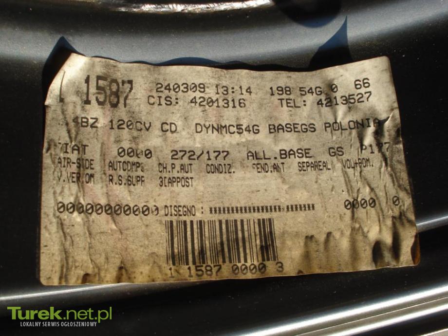 Sprzedam orginalną felgę do Fiata Bravo rozmiar 7J x 16 H2 ET 31, pochodzi z zapasu samochodu, nie była używana. Na feldze założona jest opona zużyta na innej feldze. Nie odpowiadam na SMS-y. Proszę dzwonić, cena do uzgodnienia.
