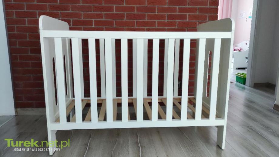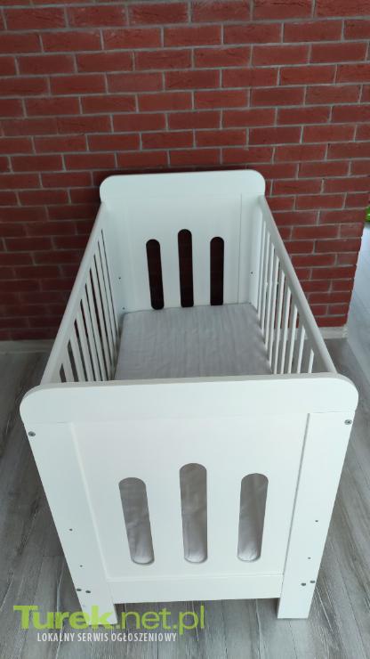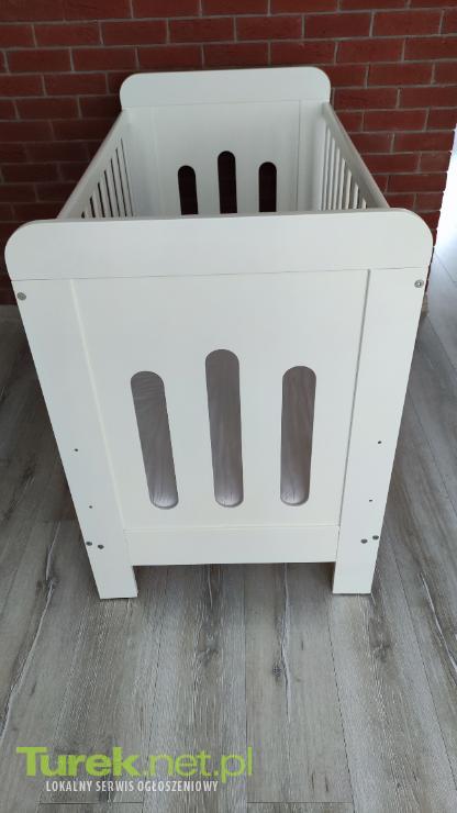 Drewniane łóżeczko dziecięce o wymiarach 120x60 cm. Solidna konstrukcja, grubsze szczebelki. Zestaw z szufladą i barierka dla starszego dziecka. Stan ogólny bardzo dobry. Wysokość łóżeczka - 93,5 cm. Cena z materacem(piankowy-8 cm)- 250zł. Odbiór osobisty - Turek