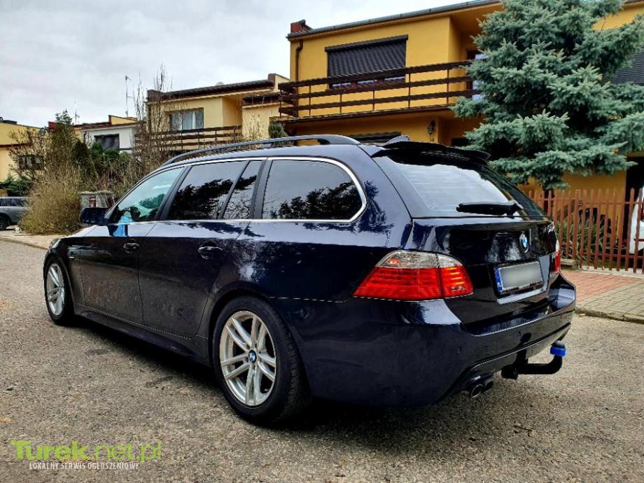 Bmw 5 Touring E61 525d 197km 3.0d 2007r Lift M-Pakiet Sprowadzona z Niemiec (Zarejestrowana w PL jestem pierwszym wlascicielem w PL) Oryginalny i aktualny przebieg 322,000km (omplet 2 kluczyków Świeżo po wymianie oleju (Liqui Moly) filtrów (oleju,powietrza,kabinowy) klocków hamulcowych. Ciekawa wersja wyposażenia: +M-Pakiet zewnętrzy/wewnętrzny #Kierownica Performance *Szyberdach Panoramiczny *Skórzana tapicerka Leder dakota/natur-braun *Podgrzewane przednie fotele *Potparcie lędźwiowe fotela regulowane Kierowcy/ Pasażera *Duża Nawigacja CIC iDrive z polskim językiem +Radio BMW Professional z dyskiem twardym #Bluetooth *lnterfejs USB *Złącze AUX *Tempomat +Światła BiXenon +Światła przeciwmgielne *Czujniki pakowania przód i tył *Sensor deszczu/zmierzchu *Automatyczna klimatyzacja dwustrefowa +Relingi dachowe +Listwe zewnętrzne Chrome Line +Fotochromatyczne lusterko wsteczne *Hak wypinany oryginalny BMW-Westfalia