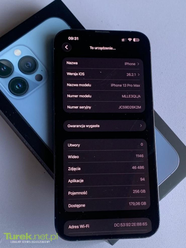Smartfon Iphone 13 Pro Max 256 GB sierra blue. Bateria 85%. Wszystko działa bez zarzutu. Nic nie było wymieniane w telefonie, nie był naprawiany. Plecki i boki bardzo ładne bez rys. Niestety ma kilka rys na ekranie u góry ( widać na zdjęciach). Jak się założy szybkę ochronną nie widać tych rys. Przy aparacie są delikatne wyszczerbienia, ale absolutnie nie rzutują na jakość zdjęć (widać na zdjęciach) .W zestawie z pudełkiem, bez akcesoriów. Telefon jest wyzerowany, nie posiada żadnych blokad. #iPhone13ProMax #iPhone13ProMax256GB #SierraBlue #Apple #iPhoneNaSprzedaż #SprzedamIphone #TelefonNaSprzedaż #UżywanyIphone #StanBardzoDobry #Bateria85 #256GB #SmartfonApple #BezBlokad #Oryginalny #ZPudełkiem