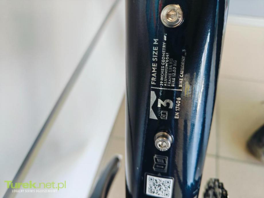 Rower w bardzo dobrym stanie. Mało używany. Kupiony 22 lipca 2024r. Cena do negocjacji. Opis z aukcji Decathlon: Przeznaczony na regularne rowerowe wycieczki. Napęd jednorzędowy Shimano Deore 10-biegowy zapewnia wytrzymałość i moc. Standard BOOST oferuje większą sztywność kół, które zyskują większą efektywność i precyzję. Waga: 12,8 kg (w rozm. M bez pedałów). Materiał ramy: aluminium. Typ: pół-sztywna. Rozmiar kół: 29" (M/L/XL), 27,5" (S). Skok widelca: 120 mm. Napęd: 1x10. Hamulce: hydrauliczne. Sztyca siodła: aluminium. Gwarancja na ramę, mostek i kierownicę: dożywotnia. Skład: Aluminium 6061 o zróżnicowanej grubości. Tylna oś 148 mm x 12 mm BOOST. Sztywna oś o przekroju sześciokątnym. Suport gwintowany (BSA) 73 mm. Pancerze i przejście pancerzy do teleskopowej sztycy pod elementami ochronnymi. Przekrój sztycy 31,6 mm. Stożkowa główka ramy (tapered). Mocowanie dla 2 bidonów (1 w rozm. S), mocowanie bagażnika. Shimano DEORE. Jednorzędowy 30 zębów (kompatybilny z 32 zębami). Korby 175 mm. Suport ze sztywną osią, zewnętrzne łożyska. Shifter i tylna przerzutka 10-rzędowe. Kaseta 11-46. Łańcuch KMC X10.
