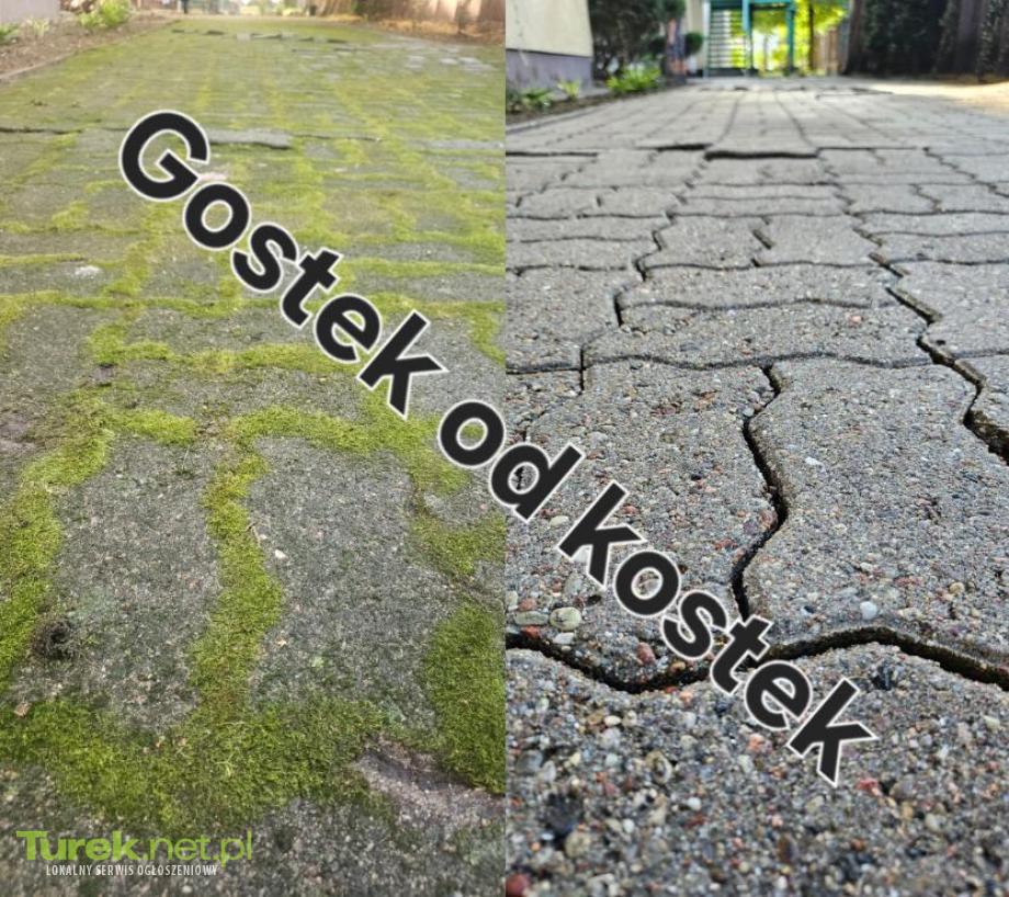Błysk Bruk Gostek od Kostek jako JEDYNA Firma w regionie oferuje usługi: Czyszczenie kostki brukowej z odsysaniem błota i nieczystości powstających podczas czyszczenia. Nie rozrzucamy błota na kamienie, skalniaki, krzewy i inną otaczającą kostkę roślinność co daje nam niepowtarzalny efekt po czyszczeniu !! Z taką samą starannością zajmujemy się czyszczeniem płotów betonowych, dachów, chodników, elewacji budynków. Usuwamy wszelkie zabrudzenia powstałe na drodze oddziaływania środowiska naturalnego oraz działalności człowieka takie jak: - glony - mchy - zacieki rdzy - osad - kurz - olej. Jeśli ktoś Ci mówi że zrobi to szybciej i taniej to na pewno nie zrobi tego LEPIEJ ! 887 070 482