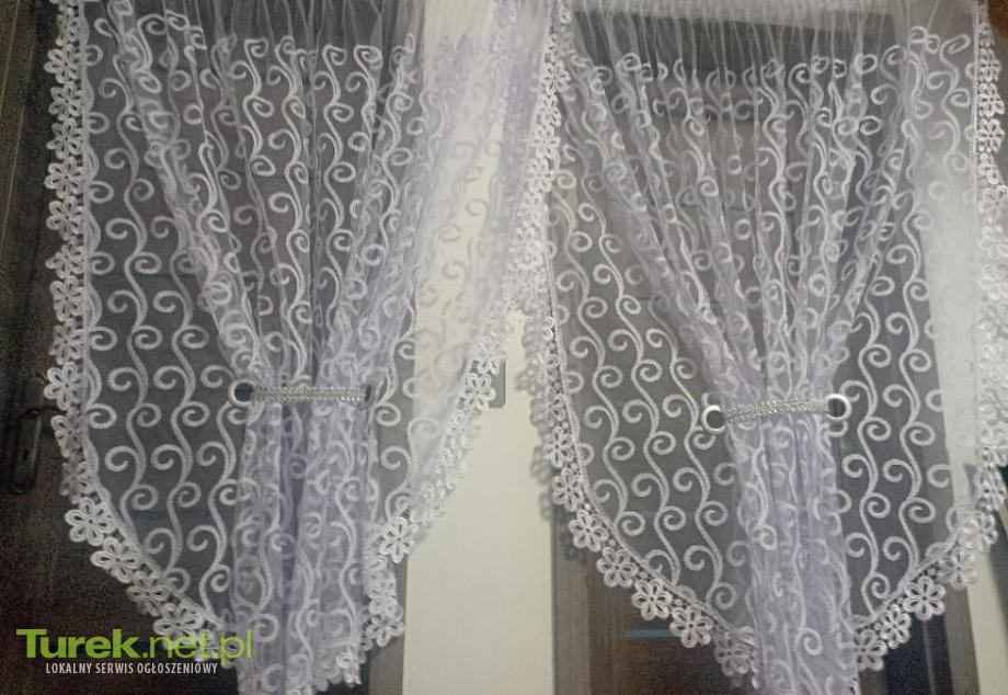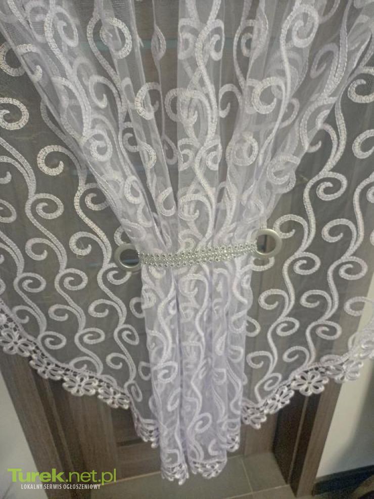 Sprzedam firankę szerokość 300cm, długość 155cm, obszyta gipiurą, na firance widoczny jest brokat, zero dziur i plam. Do obejrzenia okolice Władysławów.