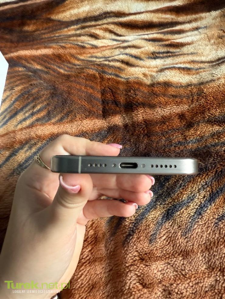 Sprzedam iPhone 15 Pro Max w kolorze tytan naturalny(szary), wersja 256 GB. Telefon komórkowy w stanie idealnym. Bateria 86%. Zawsze noszony w etui i ze szkłem ochronnym. Wszystko działa perfekcyjnie, nigdy nie był naprawiany. W zestawie opakowanie telefonu, etui, kabel, posiadam dowód zakupu. Odbiór osobisty 62-700 Turek, nie wysyłam