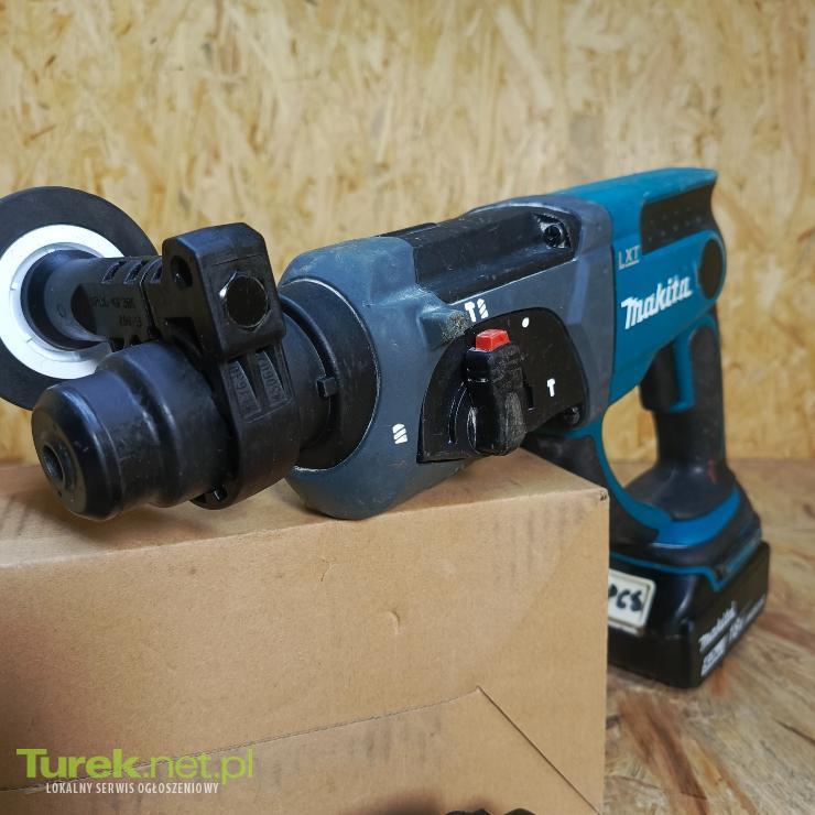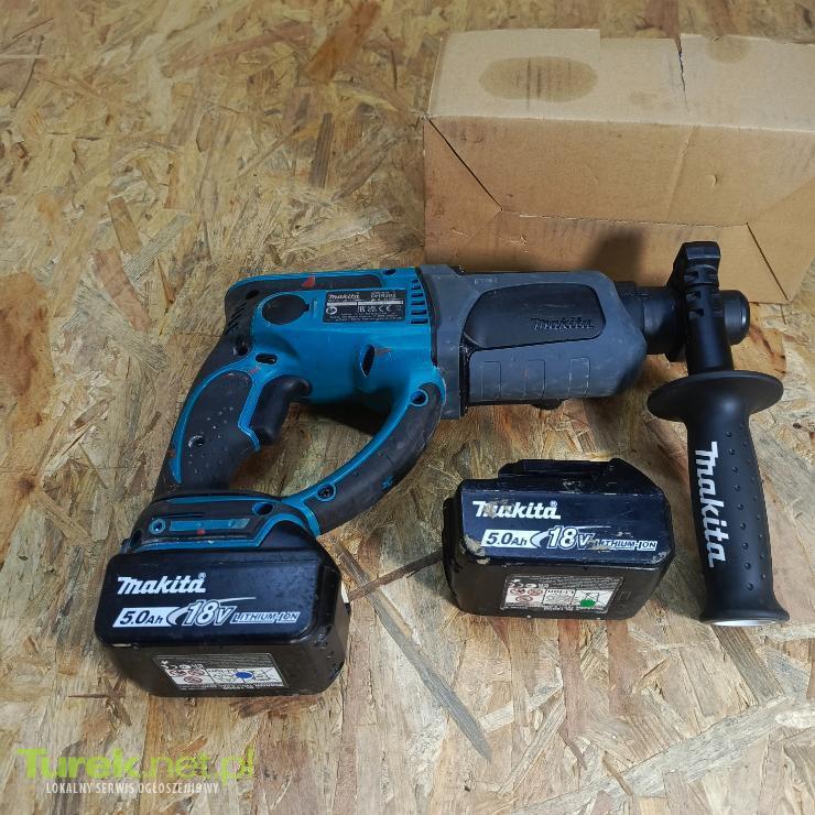 Przedmiotem sprzedaży jest wiertarka udarowa makita z dwoma akumulatorami 5 ah Sprzęt używany, w pełni sprawny. Zdjęcia przedstawiają rzeczywisty stan przedmiotu. Opis: 3 tryby pracy: wiercenie, wiercenie z udarem i kucie Przesuwny uchwyt pozwala na szybką wymianę narzędzia typu SDS-PLUS Beznarzędziowe 40 - pozycyjne przestawianie dłuta Zderzak chroni dźwignie trybu pracy oraz obudowę przekładni Ogranicznik głębokości Dane techniczne: Napięcie zasilania: 18 V Typ akumulatorów: Li-ion Obsługiwane akumulatory: 1,5 / 2,0 / 3,0 / 4,0 / 5,0 / 6,0 Ah Prędkość obr. na biegu jałowym: 0 - 1200 obr./min Częst. udarów na biegu jałowym: 0 - 4000 /min Maks. średnica wiercenia w stali: 13 mm Maks. średnica wiercenia w drewnie: 26 mm Maks. średnica wiercenia w betonie: 20 mm Energia udaru (EPTA): 1,9 J Uchwyt narzędziowy typu: SDS-PLUS Wymiary (długość całkowita): 358 mm Waga (EPTA): 3,2 - 4,0 kg