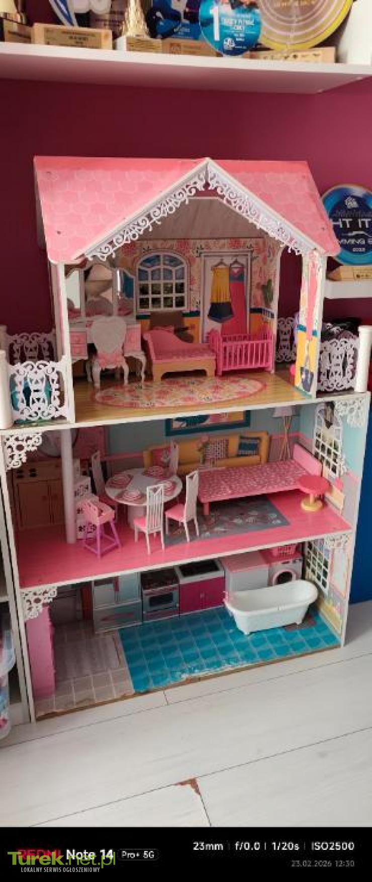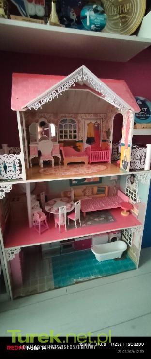 Witam sprzedam domek dla lalek widoczny na zdjęciu. Wymiary domku wysokosc 120cm.szerodkosc 80cm. Głębokość 35cm. Stan domku bardzo ładny zadbany w zestawie są wszystkie mebelki. Polecam 603321173