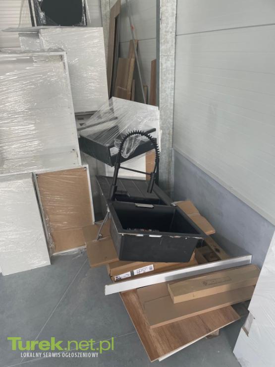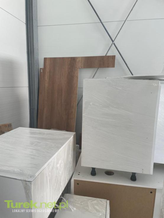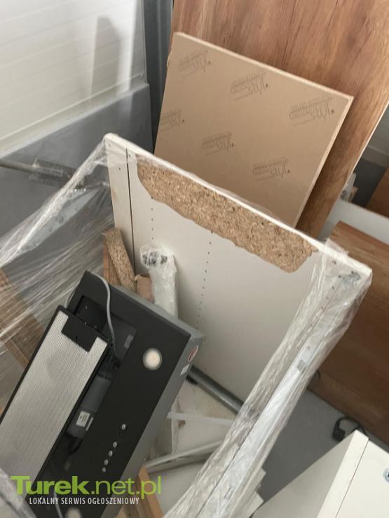 Meble po demontażu (reklamacja), posiadają ślady użytkowania oraz ślady wynikające z demontażu. Największym uszkodzeniem jest oderwana okleina od wewnętrznej strony jednej z szafek. Pozostałe ślady są widoczne na zdjęciach.