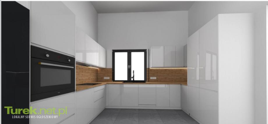 Na sprzedaż kompletna zabudowa kuchenna wykonana według projektu aranżacji (układ narożny/U – zgodnie z załączonym rysunkiem i wizualizacją).