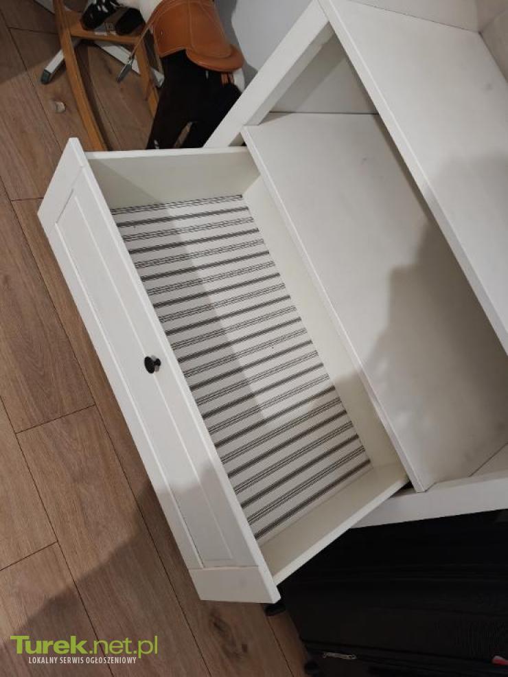 Komoda z przewijakiem Ikea Sundvik. Stan bdb. Komoda jest z litego drewna, można ją spokojnie przetrzeć papierem i odmalować żeby odświeżyć. Można używać rozłożonej (funkcja przewijaka) i złożonej jako komoda z dodatkową półką. Przewijak rozkłada się lekko jedna ręką, super opcja by oszczędzić miejsce. Wymiary i więcej inf. można sprawdzić na stronie Ikea. Cena nowej 1tys. zł.