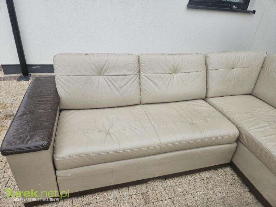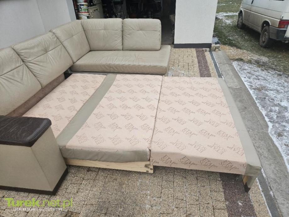 Sprzedam narożnik z funkcją spania wykonany ze skóry naturalnej. Nie posiada żadnych przetarć ani dziur. Narożnik jest również obity skórą z tyłu.
