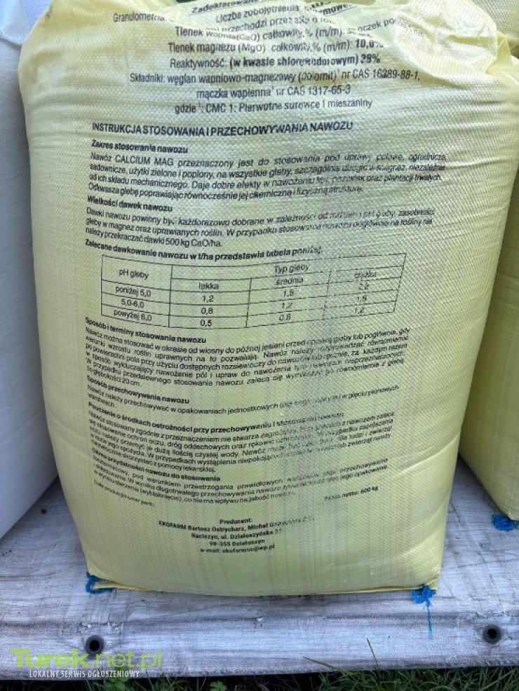 Sprzedam wapno granulowane magnezowe i węglanowe każda ilość w workach big bag po 600 kg . Przy większej ilości możliwość transportu