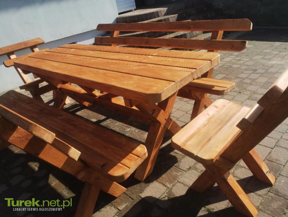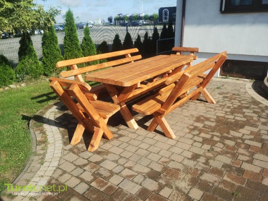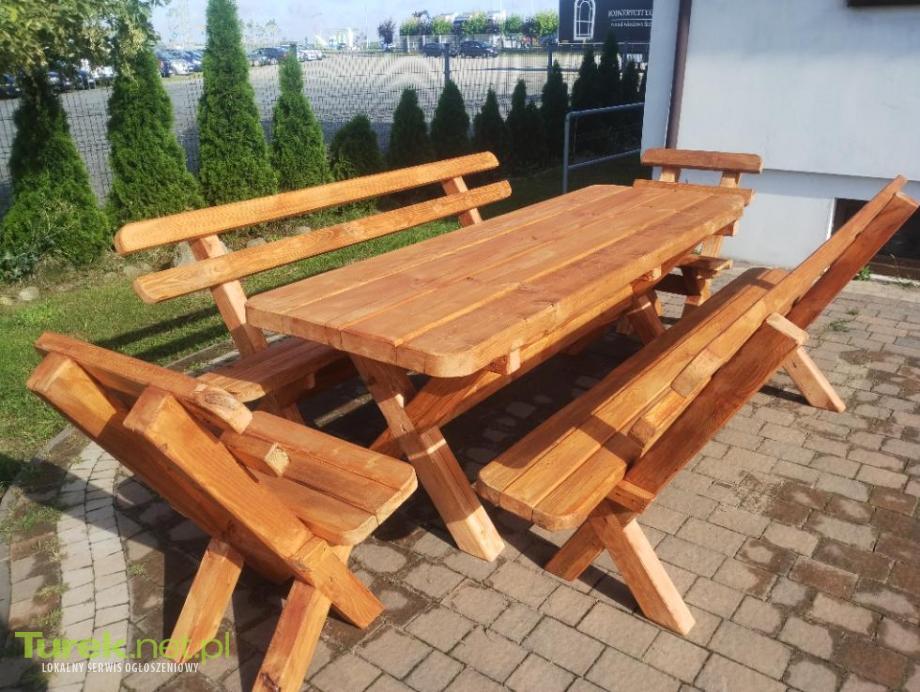 Solidny zestaw mebli ogrodowych składający się z stołu o wymiarach 232cmx80cm wysokości 84cm i grubym blacie 7cm dwie ławki o długości 232cm oraz dwa krzesełka szerokie na 70 cm wszystko na grubych noga 9x7.5 meble zaimpregnowane drenochronem w kolorze tik po więcej informacji proszę o kontakt telefoniczny, możliwość zrobienia w innych wymiarach zestawu.