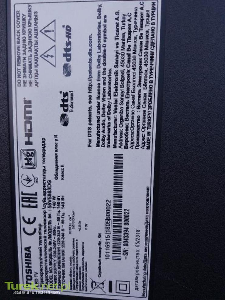 Sprzedam tv toshibà głos. jest obrazu niema z pilotem nie odp na smsy wym 124 x 72 cm nie odp na smsy