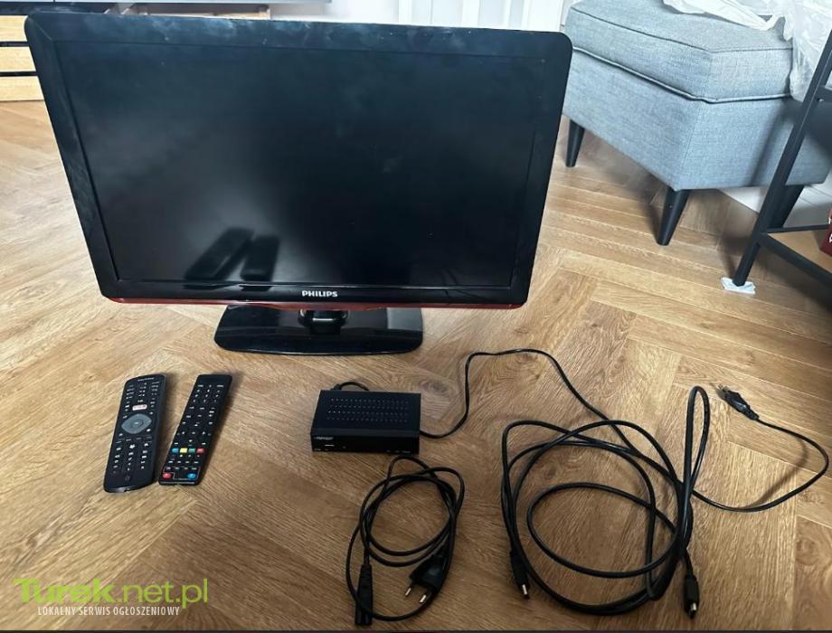 Sprzedam TV Philips 26 cali + dekoder, model telewizora TV 26 PFL 3405H. W komplecie polot, dekoder z pilotem, kabel zasialający telewizor i kabel HDMI. Cena 150 zł za całość. Tel. 665 287 876. Turek