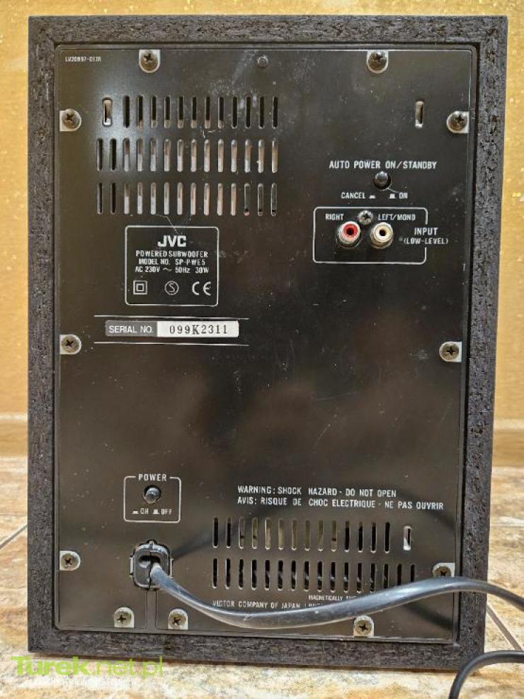 Aktywny subwoofer JVC SP-PWE5. Doskonałe uzupełnienie systemu audio. Zapewnia głębokie i mocne basy. Sprawny 100% stan jak na zdjeciach. Dane techniczne: Typ: subwoofer z pojedynczym przetwornikiem Pasmo przenoszenia: 25 Hz do 200 Hz...