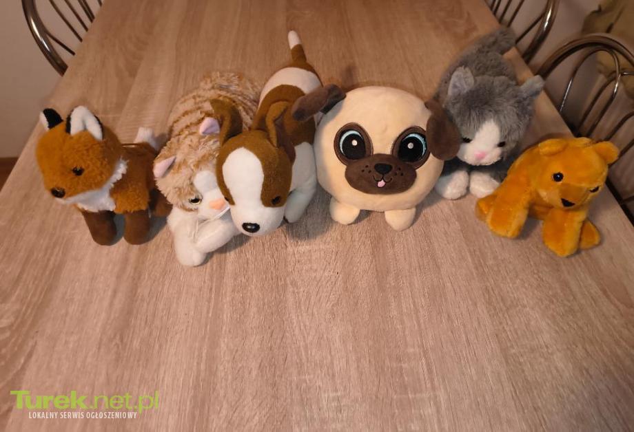 Sprzedam w bardzo dobrym stanie maskotki pluszowe. Jeden kotek miauczy po naciśnięciu brzuszka. Całość 30 zł. Można oddzielnie też kupić wybranego pluszaka.