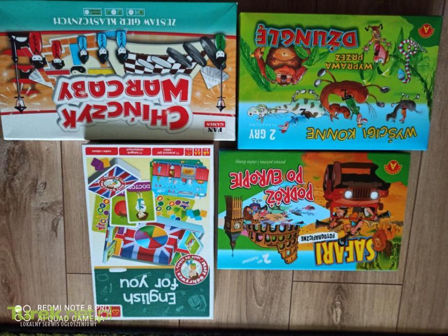 Sprzedam gry planszowe różne np chińczyk, safari, angielski gra o przyrodzie, mozaika, puzzle 10 zl.szt. Stan idealny były otwarte ale sa kompletne i w bardzo dobrym stanie polecam nie wszystkie sa na zdjeciach.