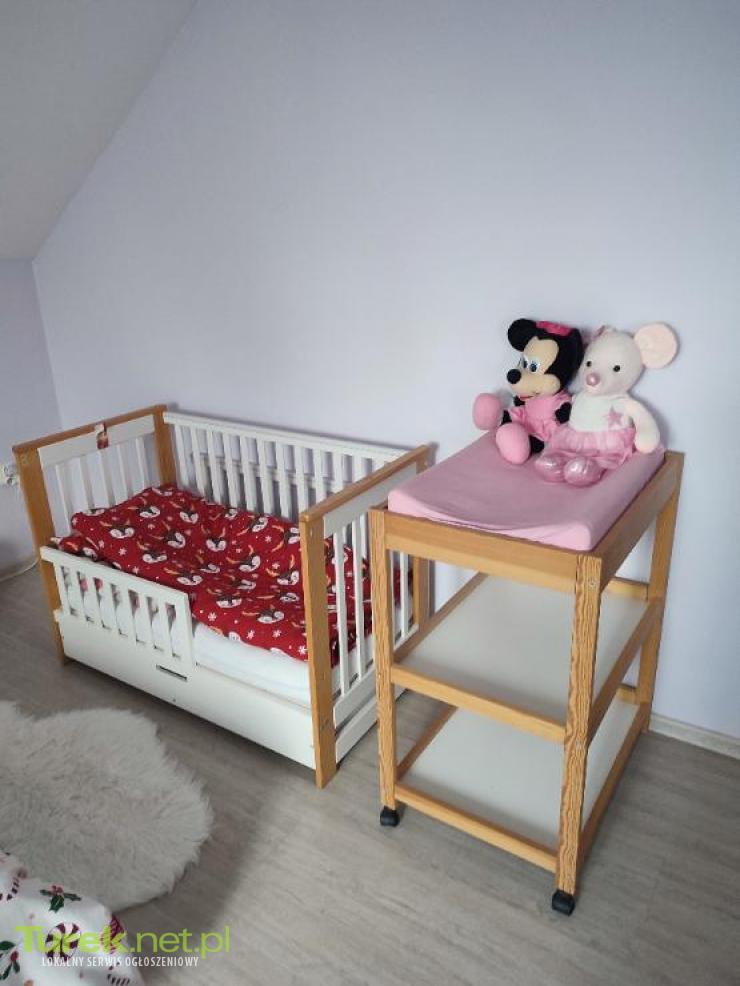 Sprzedam komplet firmy klupś łòżeczko dziecięce sosnowe 120/60 2w1 ( łòżeczko/tapczanik) z materacem (kokos/gryka) + pòłkoprzewijak . Stan idealny